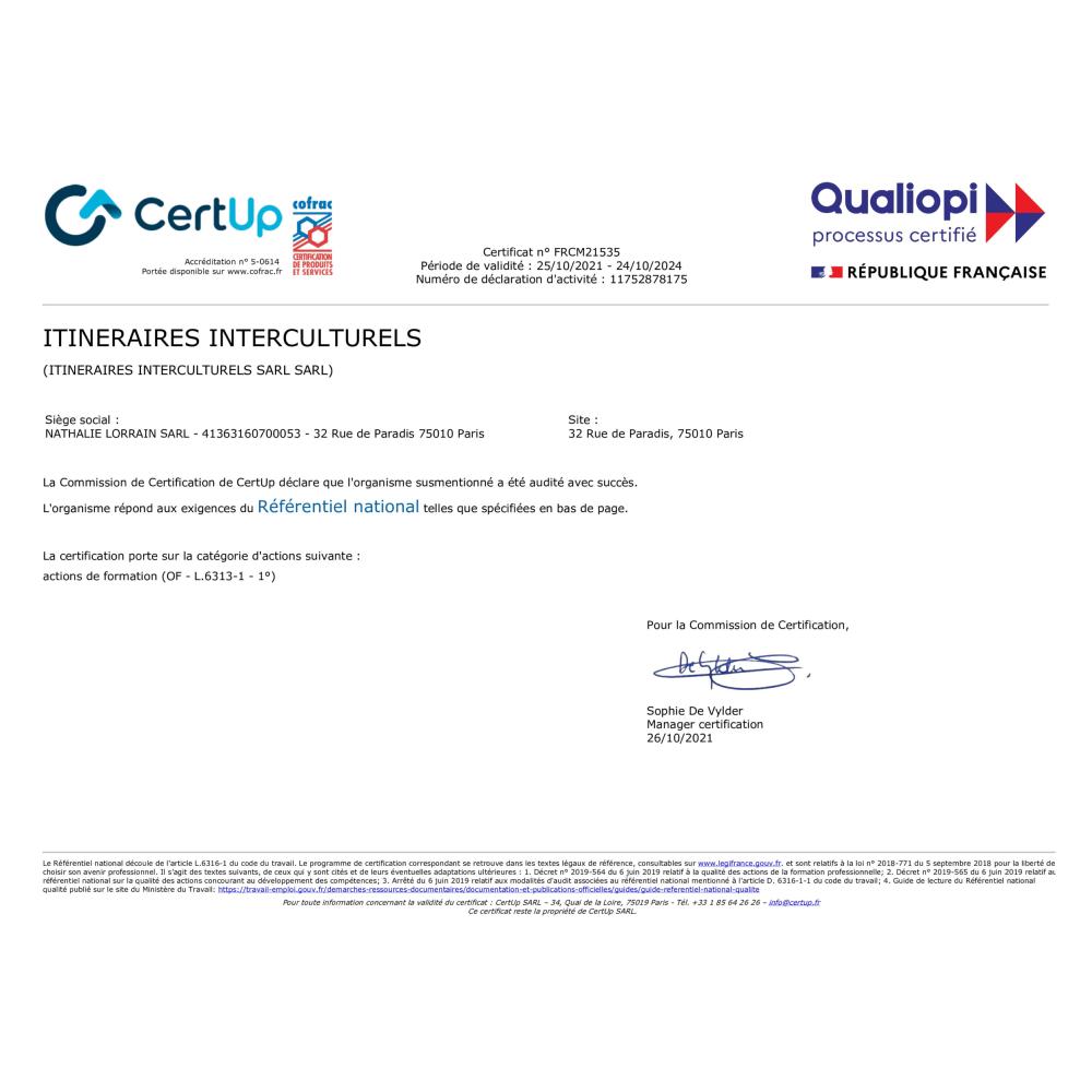 Itinéraires Interculturels est labellisé Formation et Management Interculturels du Cercle Magellan Moyenne générale obtenue à l'enquête du Cercle Magellan (avril à juillet 2024) : 4,7/5